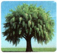 ①这棵槐树的树干十分粗大,要两三个大人才能围抱住,树干上分出四个大树权,树权上又分出许许多多的小树枝。②它还特别高。③它的枝叶十分茂盛。④绿色的树冠上堆叠着象牙般的白色槐花。