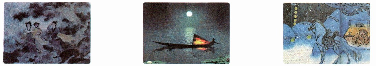 1. 竹喧归浣女 莲动下渔舟 2. 月落乌啼霜满天 江枫渔火对愁眠 3. 风一更 雪一更 聒碎乡心梦不成,故园无此声