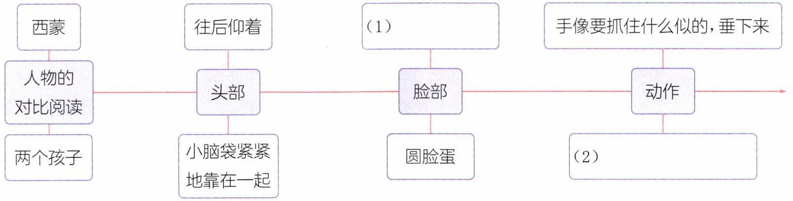 2.(思维导图)从“对比阅读”的角度思考,仔细阅读选段二,抓住人物描写中的关键词句,细细品读,完成填空。