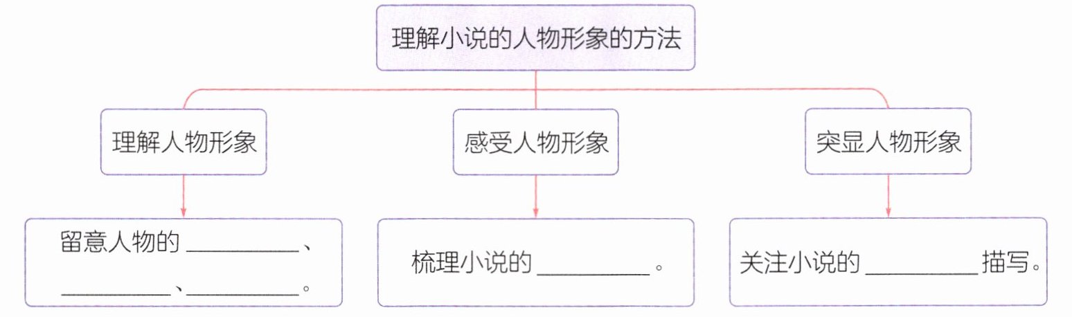 建议一: 塑造人物形象 一、短视频以独特的视角和生动的演绎,将小说中的经典人物形象栩栩如生地呈现在观众眼前。结合“交流平台”的内容,完成下面的思维导图。