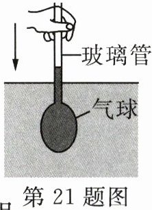 21. 在玻璃管的下端系一个装满红色墨水的小气球,水面会升入玻璃管中一部分,将小气球放入装水的烧杯中(如图所示),当小气球在水中逐渐向下移动的过程中,玻璃管中的水位将______,该现象说明______。