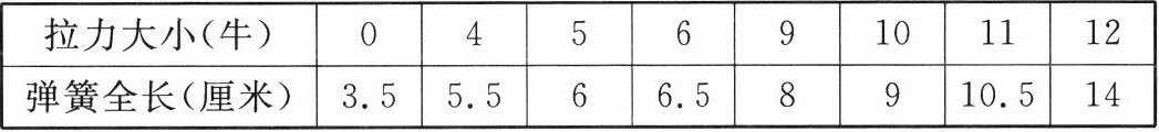 |弹簧全长(厘米)|3.5|5.5|6|6.5|8|9|10.5|14|