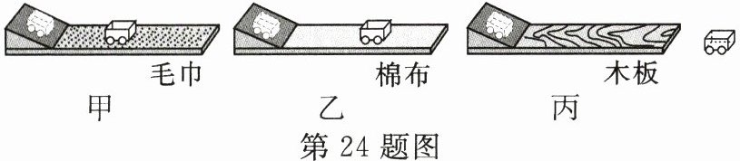 24. 在探究“阻力对物体运动的影响”时,使用的器材有斜面、木板、棉布、毛巾和小车。