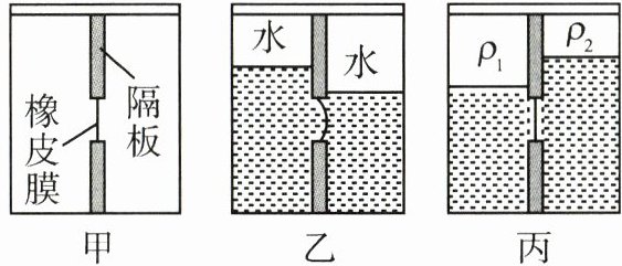(2)①橡皮膜向右凸时,说明左侧液体压强大于右侧液体压强,而左侧深度小于右侧,则左侧液体密度ρ₁一定大于右侧液体密度ρ₂;②橡皮膜左右相平时,说明左侧液体压强等于右侧液体压强,而左侧深度小于右侧,则左侧液体密度ρ₁一定大于右侧液体密度ρ₂。