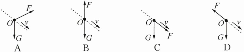 6. 如图所示,是梧田老街的凤凰飞天秀。假设凤凰正沿直线朝右下方匀速运动,用字母G表示凤凰所受的重力,F表示空气对它的作用力,下列四幅图中能表示此过程中凤凰受力情况的是 ………( )