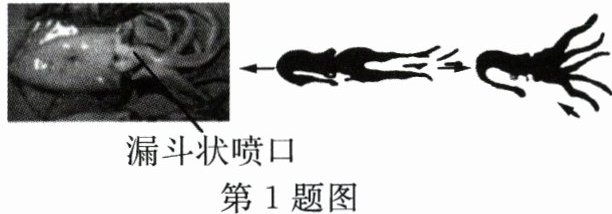 1. 鱿鱼是以类似于火箭的推进方式来推动身体运动的。当它紧缩口袋状的身体,通过漏斗喷口将水向前喷出,从而推动身体向后运动,如图。推动鱿鱼向后运动的力来自于………………( )
