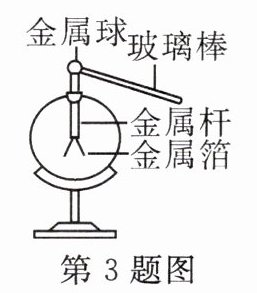 3. 实验室常用验电器来检验物体是否带电。用被丝绸摩擦过的玻璃棒接触验电器的金属球,可发现验电器的金属箔会张开,对这一现象理解正确的是 ……………………………( )