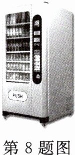 8. 如图所示,为方便购物者购买,生活中多处都设有自动售货机。可通过手机扫码(闭合$S_1)$或投币(闭合$S_2),$启动电动机完成自动售货;在光线较暗时光控开关$S_3$自动闭合,接通灯泡照明。下列电路设计符合要求的是……………………………………………………( )