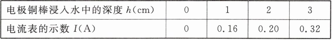 | 电极铜棒浸入水中的深度h(cm) | 0 | 1 | 2 | 3 |