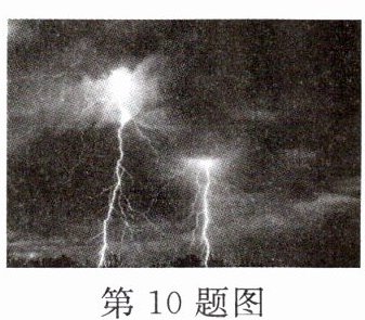 10. 如图所示的雷电是云层与大地之间或云层与云层之间的放电现象,放电的两者所带的是______种电荷;云层和空气摩擦带电的实质是______(填“产生了新电荷”或“电荷发生了转移”)。
