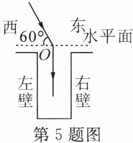 5.(反射定律)如图,太阳光与水平面成60°角,小明用一块平面镜把太阳光竖直反射到井底,入射角为______度。此时,将平面镜绕入射点O、垂直于纸面的直线逆时针转过一个小角度,反射光线会偏离竖直方向照射到______(填“左”或“右”)壁。