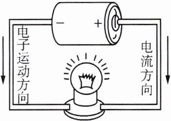 电流方向从电源正极流出,经过用电器和导线回到电源负极,电子运动方向与电流方向相反。