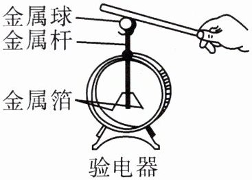 (2) 验电器 的工作原理:当被检验物体接触验电器顶端的导体时,自身所带的电荷会传到玻璃钟罩内的 箔片 上。由于 同种电荷相互排斥 ,两张箔片将自动分开成一定角度。根据两箔片 张开角度的大小 可以比较物体带电量多少。
