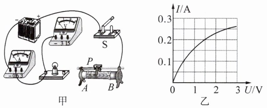 (1)请用笔画线代替导线将图甲所示的实物电路连接完整(要求:滑动变阻器的滑片向右移动时小灯变亮)。