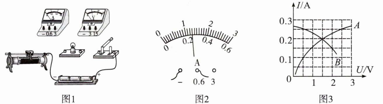 (8)另外一组同学用相同的器材和电路也做这个实验时,由于接线错误,根据测量的数据绘出的 I-U 图像如图3中的 B 所示。你认为错误的原因可能是______。