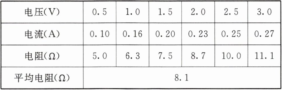 | 平均电阻(Ω) | | | 8.1 | | | |