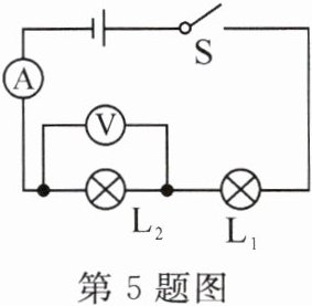 5. 如图所示的电路,闭合开关后两灯均不发光且电流表、电压表示数均为零。现将两灯泡位置互换后再次闭合开关,电流表示数仍为零,电压表指针明显偏转。根据以上信息判断该电路故障可能为 …………………( )
