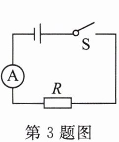 3. 如图所示,把电阻$R$接入电源电压为6伏的电路中,电流表示数是0.3安,如果要让电路中的电流增大到0.8安,可以采取的方法是 ……………………………………( )