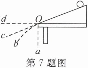 7.如图所示,桌子的边缘有一个斜面。一个小球从斜面顶端滑到斜面的底端O点后,小球将沿______路线运动;如果小球恰好滑到O点时,所受到的力全部消失,小球将沿______路线运动。(均填“a”“b”“c”或“d”)
