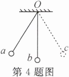 4.在竖直平面内用轻质细线悬挂一个小球,将小球拉至a点,使细线处于拉直状态。由静止释放,不计空气阻力,小球可在a、c两点间来回摆动,b点是小球运动轨迹中的最低点,如图所示。下列分析正确的是 …………………………………………………( )