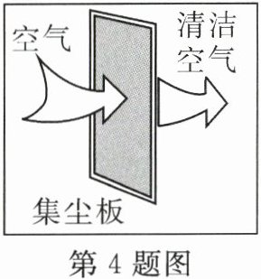 4. 如图所示,当空气通过净化器时,空气中的灰尘会被吸附在净化器的集尘板上。若集尘板带正电,则灰尘的带电情况是 ……( )