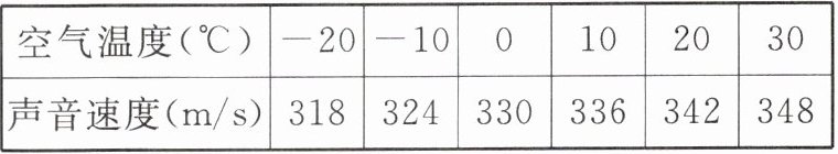 | 声音速度(m/s)| 318 | 324 | 330| 336| 342| 348|