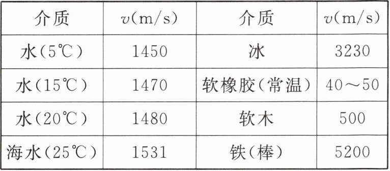 | 介质 | v(m/s) | 介质 | v(m/s) |