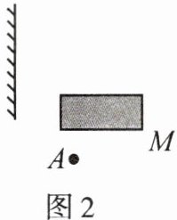 2.如图2所示,不透明物体M的下面有一个物体A,小明在平面镜的右侧,请画出小明可以通过平面镜观察到物体A的范围。(用阴影表示)