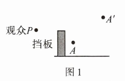 1.“仙女飞天”魔术表演中,位于P点的观众看到云雾中漫舞的仙女A',实质是挡板后的演员A在平面镜中的虚像,如图1所示。请作出平面镜的位置,并完成P点观众看到仙女的光路图。