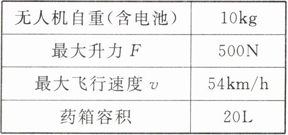 (3)若此款无人机装满农药悬停在空中时,无人机受到的升力是多少?(农药的密度约为$1.0g/cm^3$)