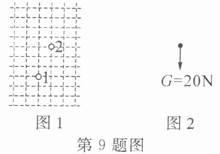 9. 所受重力为 20N 的小球做匀速直线运动。用照相机拍下其运动轨迹(每隔 0.02s 拍摄一次)。图 1 依次记录了小球在第 1、2 次拍摄时的位置。请回答下列问题。