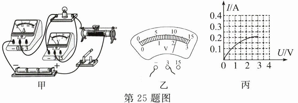25. 小明想利用伏安法测定小灯泡的电阻,实验电路如图甲所示。