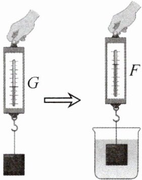 (2)称重法测浮力:用弹簧测力计测出物体在空气中受到的重力G,再将物体浸入液体中,读出弹簧测力计的示数F,则物体受到的浮力 $F_{浮}= G-F$。