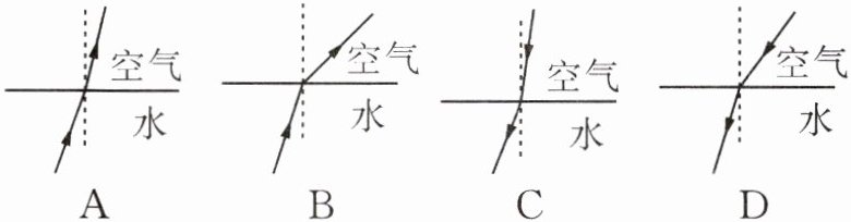 7. 如图所示,东南亚地区生活着一种射水鱼,它发现水面上的小昆虫后,能从口中快速喷出一束水柱,将昆虫击落水中,实现捕食。下列光路图能表示射水鱼观察水面上小昆虫的是…………………………………………( )
