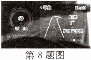 8. 开车用导航时,可能会用到HUD(抬头显示)投影模式,将手机置于汽车前挡风玻璃下方,就可以将导航的信息通过前挡风玻璃投影到正前方(如图),避免因低头看仪表而造成事故。根据所学知识,回答下列问题: