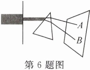 6. 如图所示,将一束太阳光投射到玻璃三棱镜上,在棱镜后侧光屏上的AB范围内观察到不同颜色的光,则 ……………………………( )