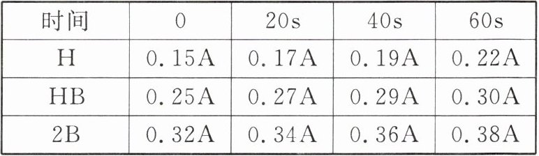 步骤三:分别将 HB 型、2B 型铅笔芯接入电路,______以上实验过程。如表是记录的通过电流的实验数据,请分析回答下列问题。