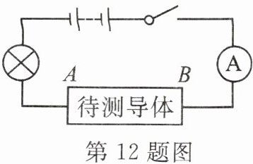 13. 如图所示为“探究影响导体电阻大小因素”的实验电路,A、B 之间接导体。