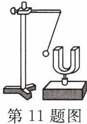 11. 为了验证声音的响度与振幅的关系,现提供如图所示的实验装置,将乒乓球竖直悬挂,用静止的音叉轻轻靠近乒乓球,接下来的操作是 ______,若观察到 ______ 的现象,则可以初步说明响度与振幅有关。