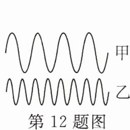 12. 海洋动物的质量越大,其叫声越是有力而低沉,即响度较 ______(填“大”或“小”),音调较 ______(填“高”或“低”)。甲、乙两曲线为科考船声呐系统收录的50kg的海豚和100t的蓝鲸的叫声波图,其中 ______(填“甲”或“乙”)是蓝鲸发出的。