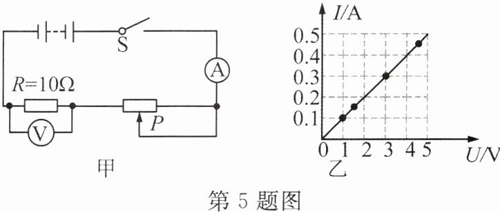 5.图甲所示为研究通过导体的电流与两端电压关系的实验电路图,小金根据实验所得的数据绘制成如图乙所示的图像。