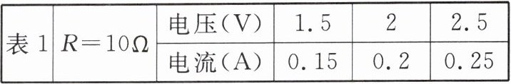 | 表1 | $R= 10\Omega$ | 电压(V) | 1.5 | 2 | 2.5 |