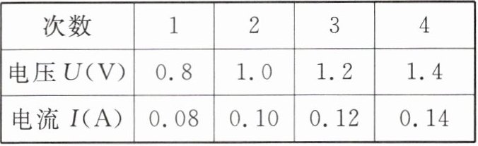 | 电压U(V) | 0.8 | 1.0 | 1.2 | 1.4 |