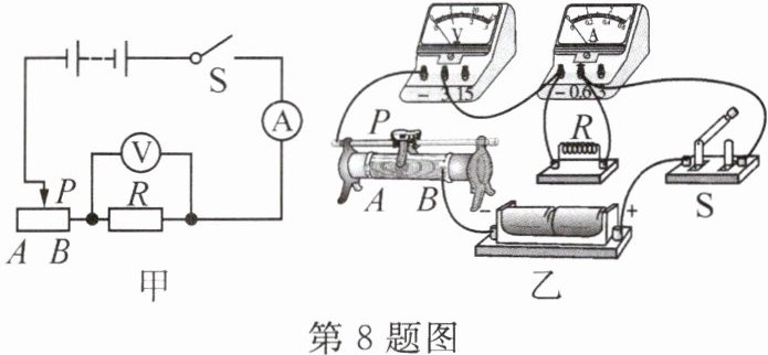 (1)根据图甲的电路图连接电路时,闭合开关前,应将滑动变阻器的滑片移到______(填“A”或“B”)端。