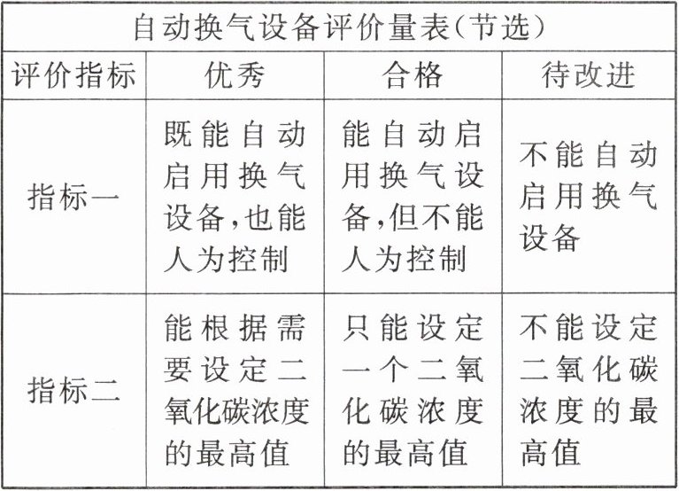|指标一|既能自动启用换气设备,也能人为控制|能自动启用换气设备,但不能人为控制|不能自动启用换气设备|