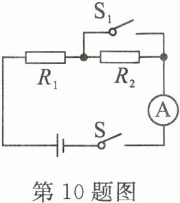 10. 如图所示,电源电压恒定不变,$R_{1}= 4Ω$,闭合开关 S,电流表示数为1A;同时闭合开关 S、$S_{1}$,电流表示数为1.5A,则: