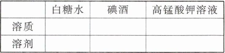| | 白糖水 | 碘酒 | 高锰酸钾溶液 |