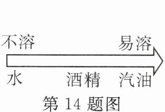 14. 一定条件下,碘固体在水、酒精和汽油中的溶解性强弱如图所示。下列说法不正确的是 ………………………………………………… ( )