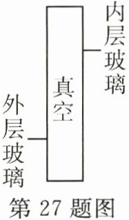 27.通过学习了平面镜成像后,爱思考的小娜发现这样现象:白天在教室里对着窗户的玻璃看,很难看到同学的像,而晚自习教室里灯光通明却很容易看到同学在窗户的玻璃所成的像,仔细观察还能发现每位同学成两个像。