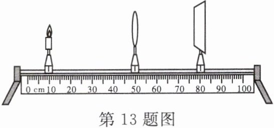13. (4分)实验室利用光具座研究凸透镜成像的规律,当三个元件移动到图示位置时,光屏上出现了清晰的像,回答下列问题: